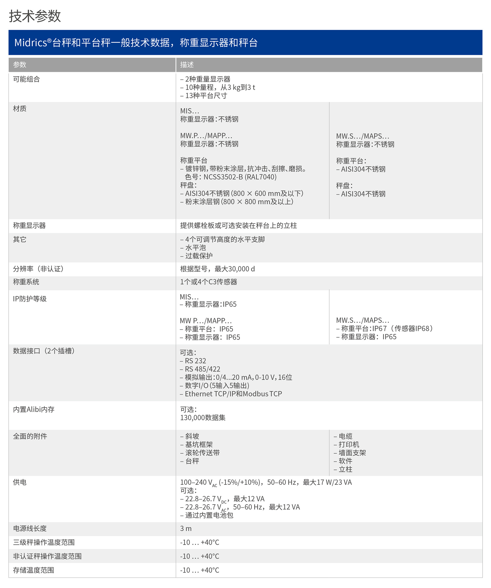 茵泰科Midrics®台秤和平台秤