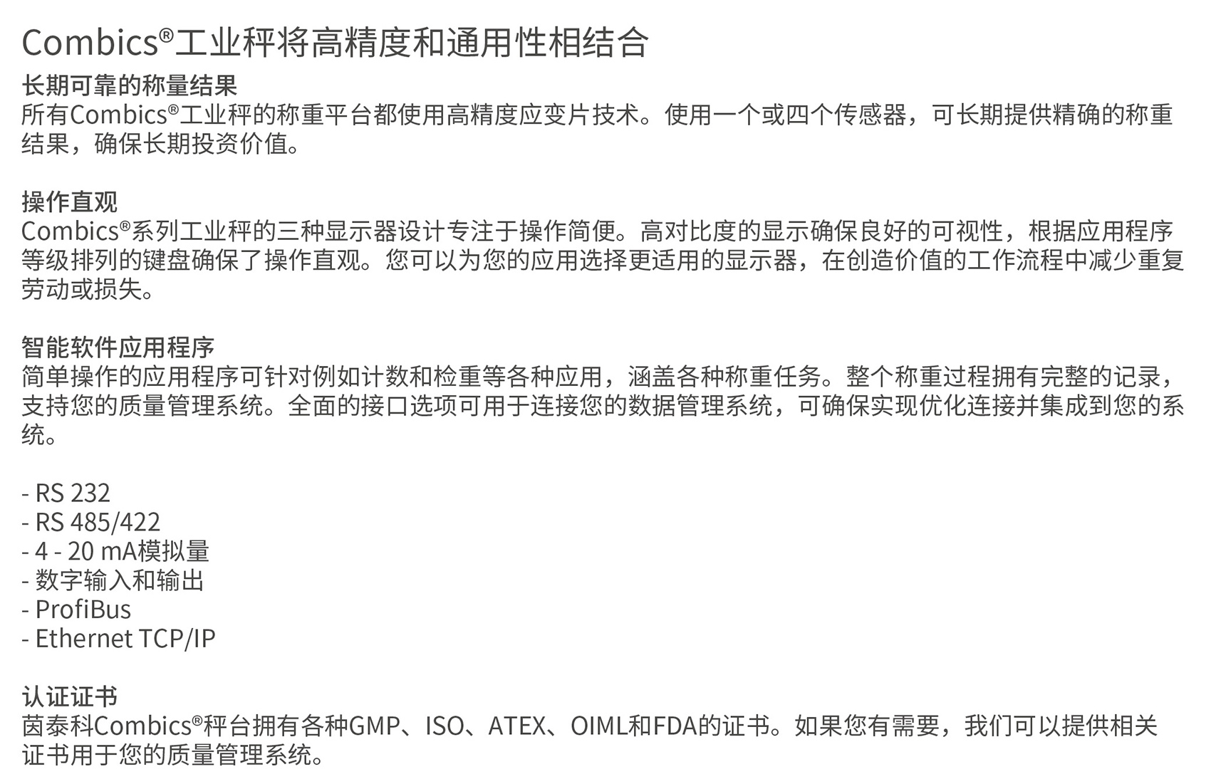 茵泰科Combics®台秤和平台秤